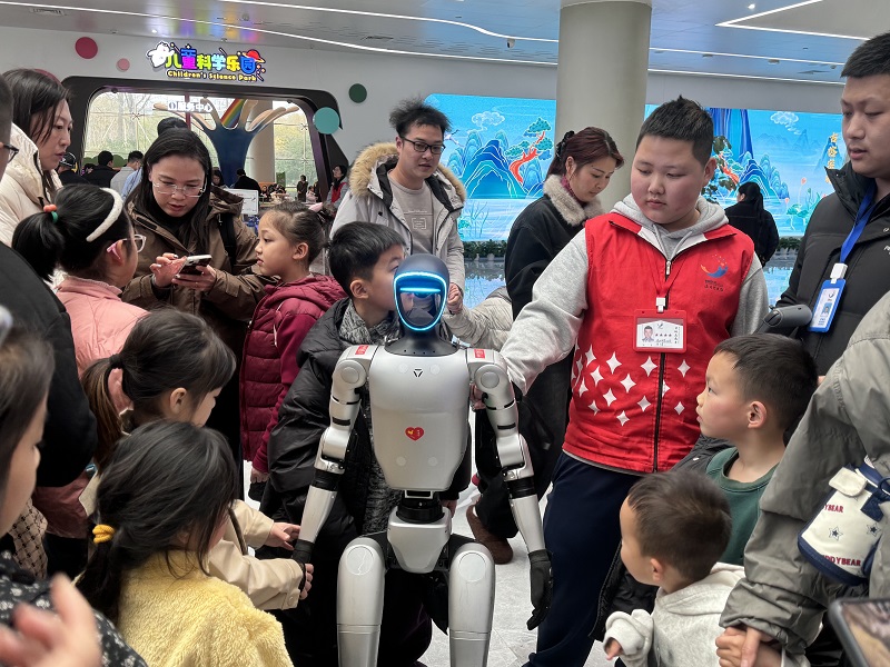 讲座结束后,孩子们兴奋地围绕在人形机器人身边,亲身感受科技带来的便捷与乐趣。在互动环节中,他们不仅近距离感受到了AI技术的魅力,更在心中种下了科技探索的种子。