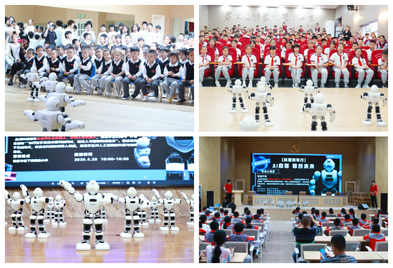 在机器人体验环节,学生们被邀请与机器人进行握手、打招呼等动作,同学们在近距离互动中感受AI的独特魅力。