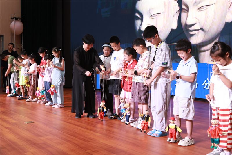 表演老师走到孩子们中间,手把手地指导大家操控木偶,他们在亲身体验中,深切感受这项传统技艺的独特魅力。