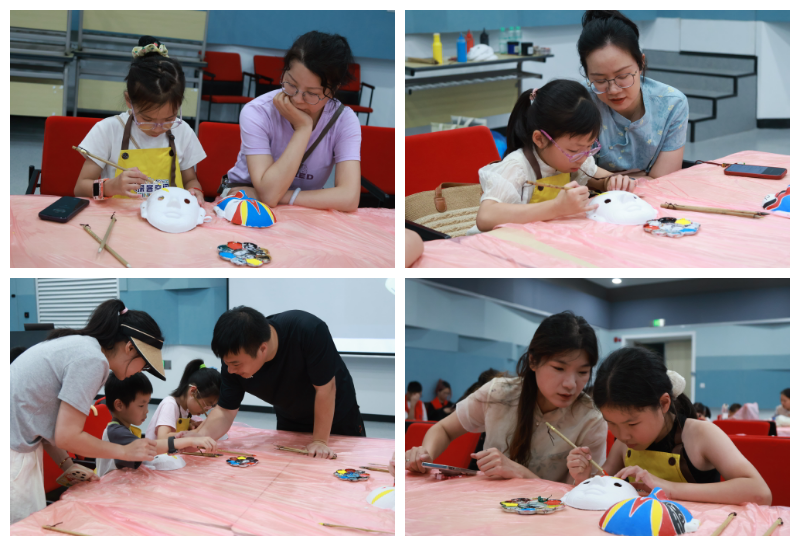 活动伊始,林老师通过生动的讲解,为孩子们揭开了中国传统戏曲脸谱的神秘面纱。林老师不仅介绍了脸谱的历史渊源、不同行当(生、旦、净、丑)的谱式特点,还讲解了色彩密码背后的象征意义,并强调脸谱不仅是舞台艺术的符号,更是中华文化精神与审美情趣的浓缩体现。随后在林老师的悉心指导下,孩子们纷纷拿起画笔化身小小“非遗传承人”,他们创作出既传统又富有个人特色的脸谱作品,展现了非遗艺术的无限可能。