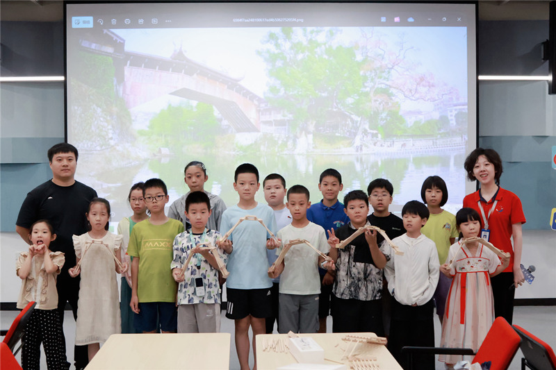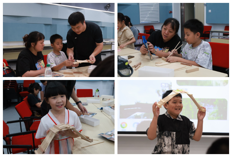 8月16日,温州科技馆特邀温州市非遗传承人林季聃,开展“科技馆里的非遗”系列科普活动之第五期《木拱廊桥拱架模型搭建课程》,带领20组亲子家庭共同开启了一场融合传统技艺、科学原理与美学智慧的沉浸式探索之旅。