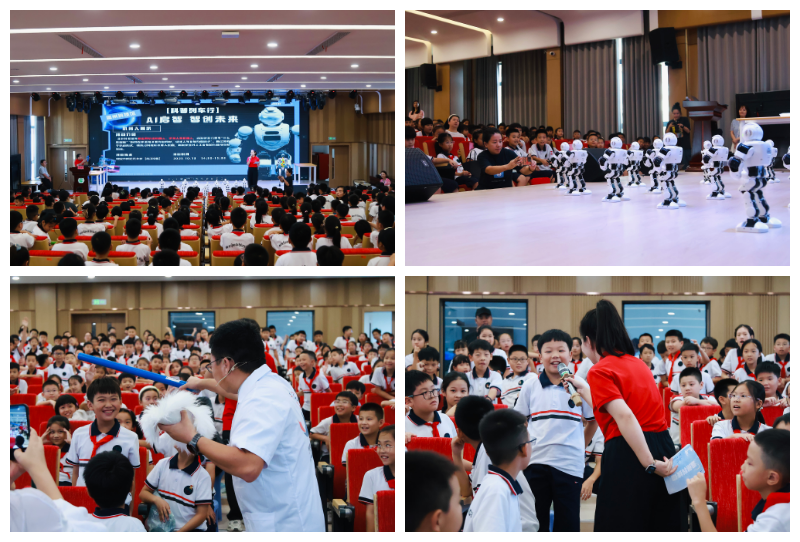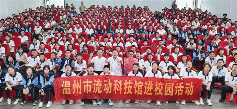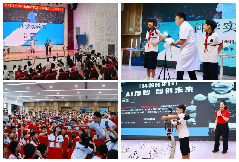 温州科技馆“科普列车行”团队首先为该校400名学生开展了机器人团队表演。灵活的机器人随着音乐节奏起舞,瞬间吸引了所有师生的目光。随后的科技知识问答环节更是互动频频,同学们踊跃抢答,回答正确的幸运儿获得了与人形机器人亲密互动的机会,体验了前沿科技的魅力。