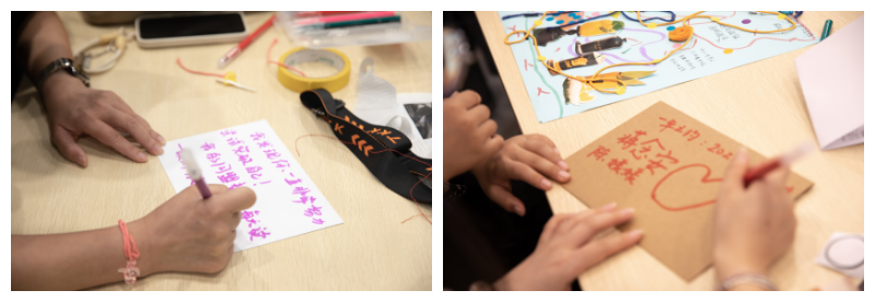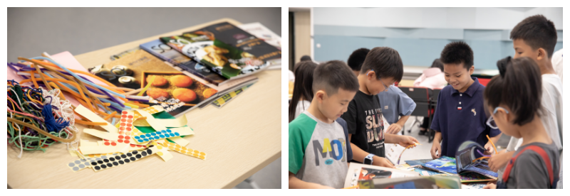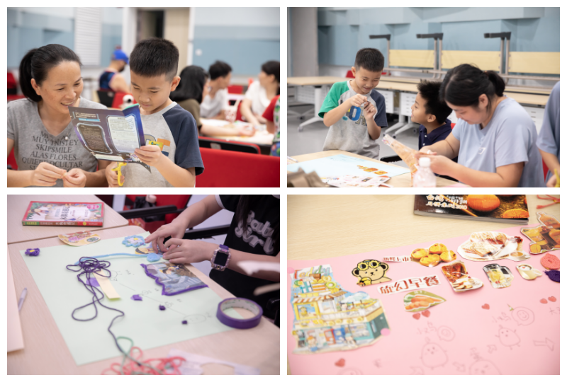 当孩子们睁开眼,亲子家庭便开始动手实践:他们翻开旧杂志,挑选象征心愿的图片,用彩笔勾勒未来的色彩,共同创作一幅“愿景蓝图”。有的孩子剪下成群的动物,憧憬成为一名细心的动物饲养员;有的孩子被甜蜜的蛋糕与糖果吸引,梦想开一家甜品店,做生活的主理人;还有的孩子将钢琴与舞台剪贴在一起,仿佛已经置身于闪耀的聚光灯下,化身一名钢琴演奏家。五彩斑斓的图像在孩子们的双手间汇聚,逐渐拼贴成一幅属于他们的“英雄藏宝图”。