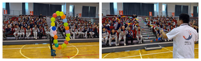 “同学们,你们能用一口气把一个2米长的塑料袋吹满吗?”随着田若平老师一声提问,全场开展了热烈的讨论。几位同学跃跃欲试,纷纷上台挑战,却都以失败告终。就在大家疑惑不解时,田老师轻松一吸一吹,塑料袋瞬间鼓胀,全场爆发出惊叹声。这一“趣味测试肺活量”的实验,不仅活跃了现场气氛,也巧妙引出了伯努利原理,激发了同学们对空气动力学的浓厚兴趣。