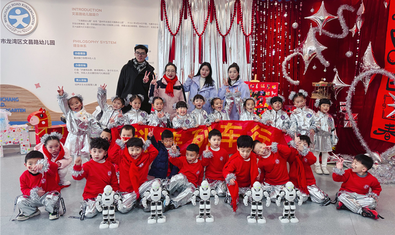 “哇!机器人会跳舞!”随着音乐响起,机器人“特工队”闪亮登场。《青春修炼手册》的欢快节奏中,机器人整齐划一地舞动身躯。孩子们跟着音乐节奏摇摆,有的模仿机器人的动作,还有的兴奋地拉着身旁小伙伴的衣袖:“快看!那个机器人转头了!”阵阵欢呼声和掌声在校园里回荡。在随后的机器人互动和科技问答环节,孩子们也展现出极大的热情,争先恐后地与机器人进行近距离互动。
