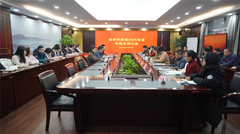 2月6日下午,温州科技馆召开2025年度总结大会,市科协副主席赵光举出席会议并讲话,馆内各部门员工代表参会。会上,馆长王刚全面总结了2025年全馆工作成效。会议指出,过去的一年,在温州市科协的正确领导和大力支持下,温州科技馆围绕“科普提质、服务升级、创新赋能”工作思路,面向公众开展丰富多彩的科学教育活动,推动科普资源普惠共享,着力满足群众高质量科普需求。全年接待游客70万人次,开展线上线下活动近1600场次,荣获省市级荣誉10余项,获评“平安单位”称号。一年来,场馆的展览吸引力、科教服务力、科普作用力、运营保障力进一步提升。