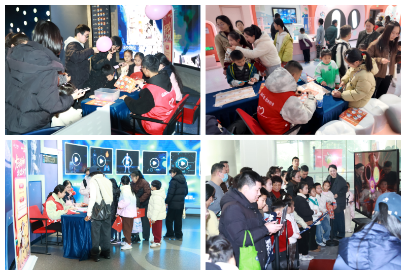 随着机器人表演的结束,科技馆集章闯关活动正式开始。孩子们手持闯关卡,穿梭于各个展区之间。从“策马飞旋”中体验离心力,在“白驹过隙”中学习清洁知识;拼装“龙马精神”的人体结构,拉动“力拔山河”的马德堡半球;发射“一飞冲天”的模拟火箭,破解新春密“码”锁的齿轮玄机。六道关卡,六枚印章,串联起一条从地面到太空、从人体到机械的科学之旅。