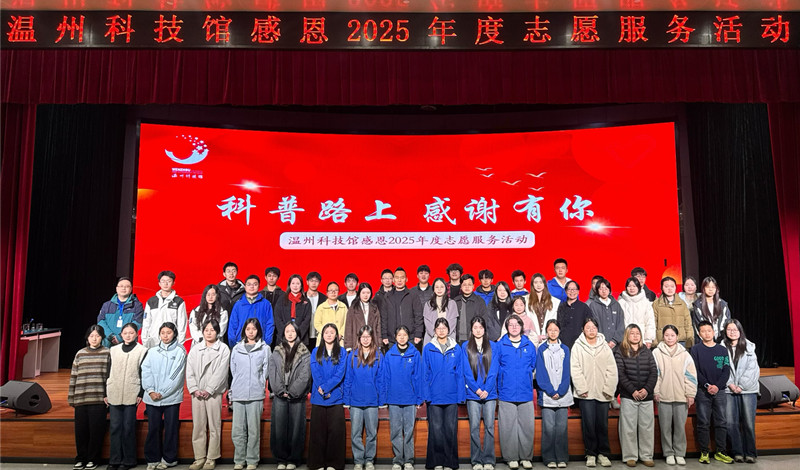 3月21日,温州科技馆举行“科普路上 感恩有你”感恩2025年度志愿服务活动,全面回顾2025年度志愿服务工作,并表彰志愿服务优秀集体与个人。活动现场,与会人员共同观看球幕电影,并欣赏科普剧《星火证道》,以一场温情满满的仪式,致敬科普路上的每一份奉献。